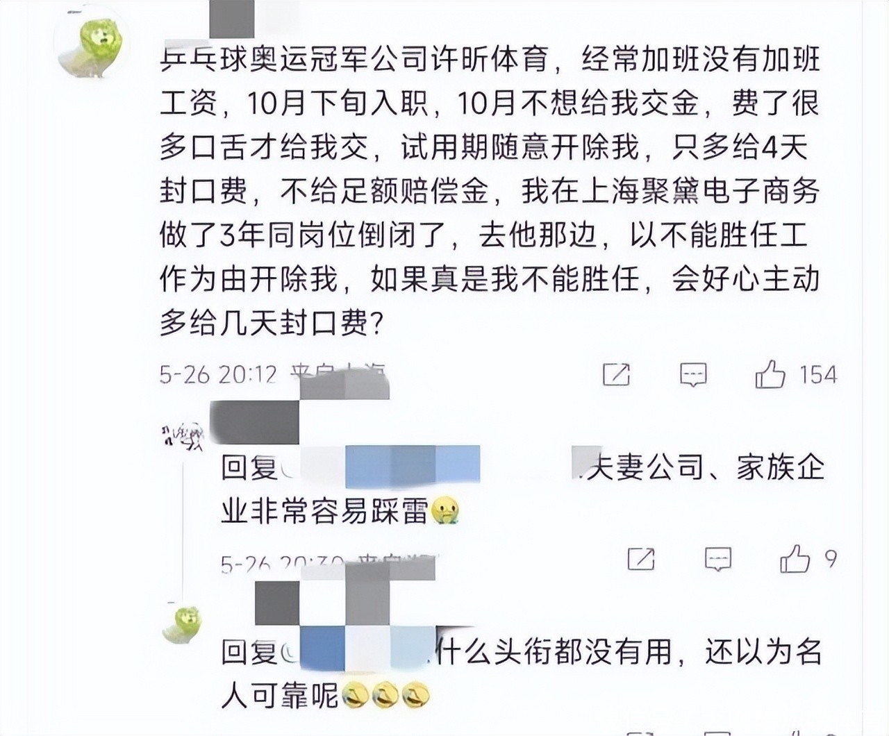 在淡出赛场之后,许昕还担任了亚洲乒乓球定约的主席。也算是身居要职!另外,许昕还在上海诞生了许昕体育文化发展有限公司。许昕成为了雇主!而此次引起的热议即是许昕体育公司的职工所爆料的!