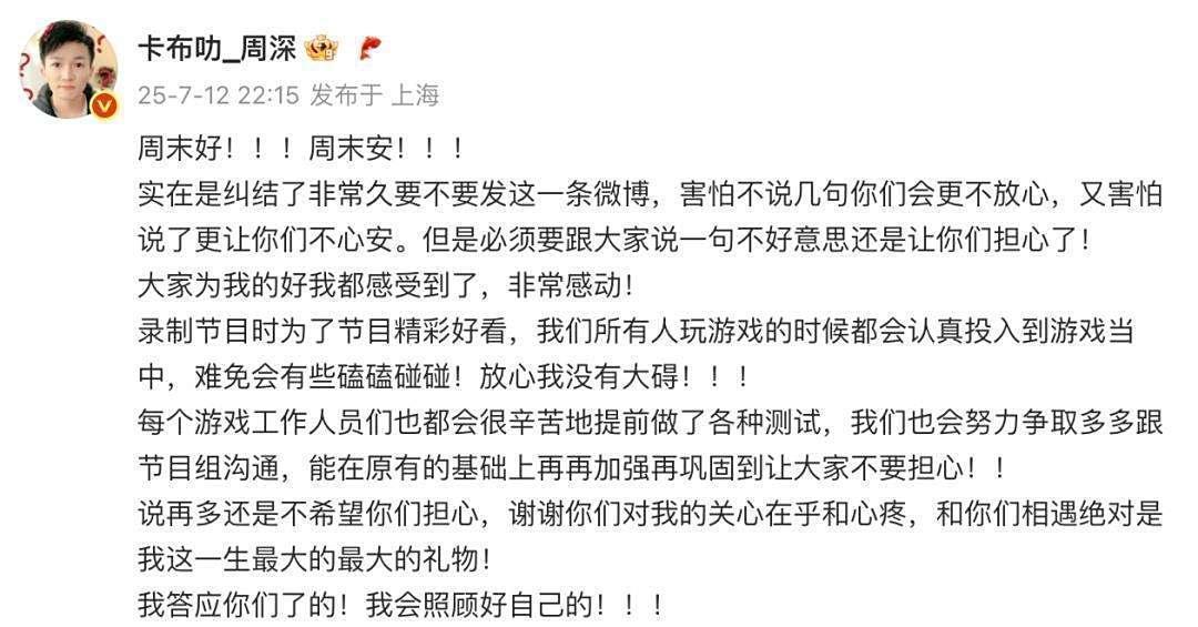 另一边,粉丝和部分网友链接站队。心爱周深的说“哥哥坚贞懂事,体现了工作教学,不该让浮言伤了温煦。”品评的说“再这样下去,综艺界下一个“拚命三郎”会不会平直出赶坟的?”还有些东谈主则反问“不等于玩个游戏嘛,非得搞得像惊悚现场?”